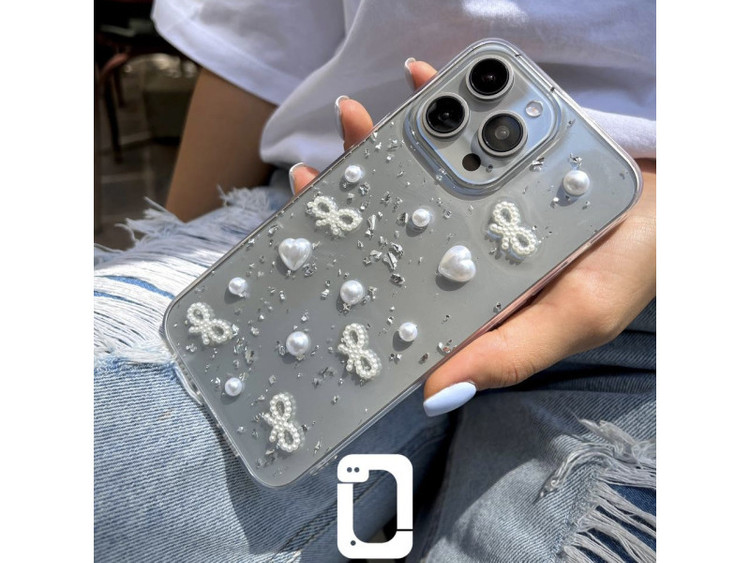 قاب پاپیون مرواریدی برجسته Apple iphone 11-11pro-11promax-12-12pro-12promax-13-13pro-13promax-14-14promax-15-15pro-15promax